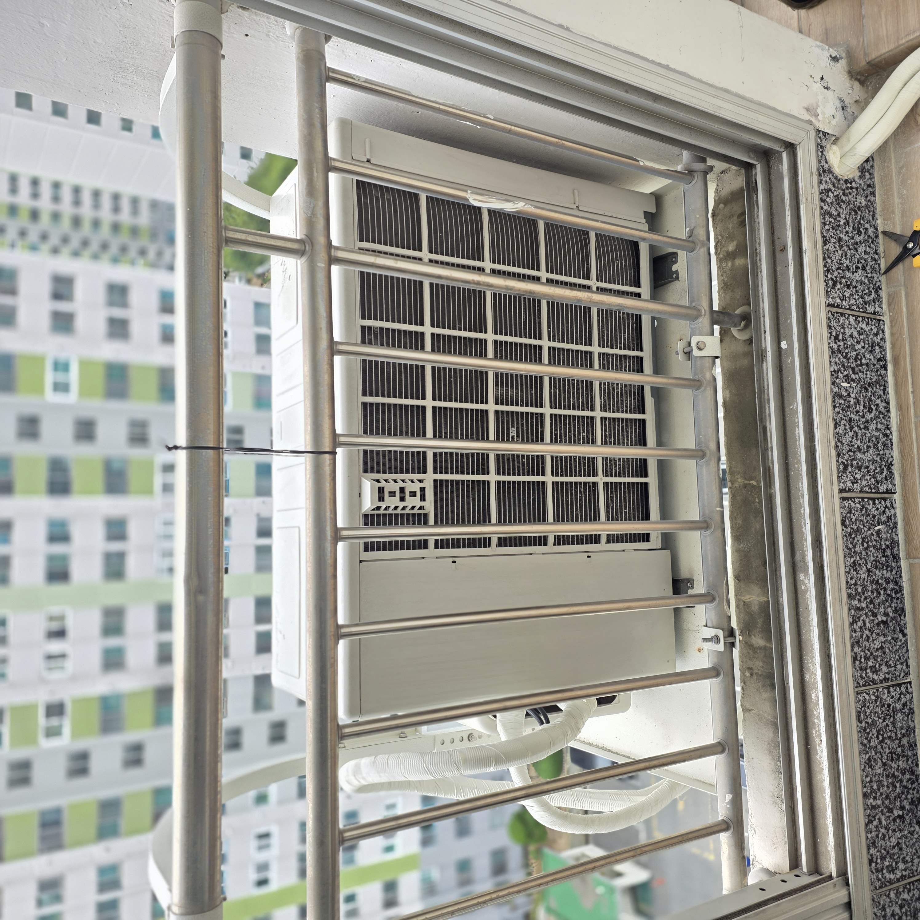 실외기는 외부난간 설치 진행하였습니다